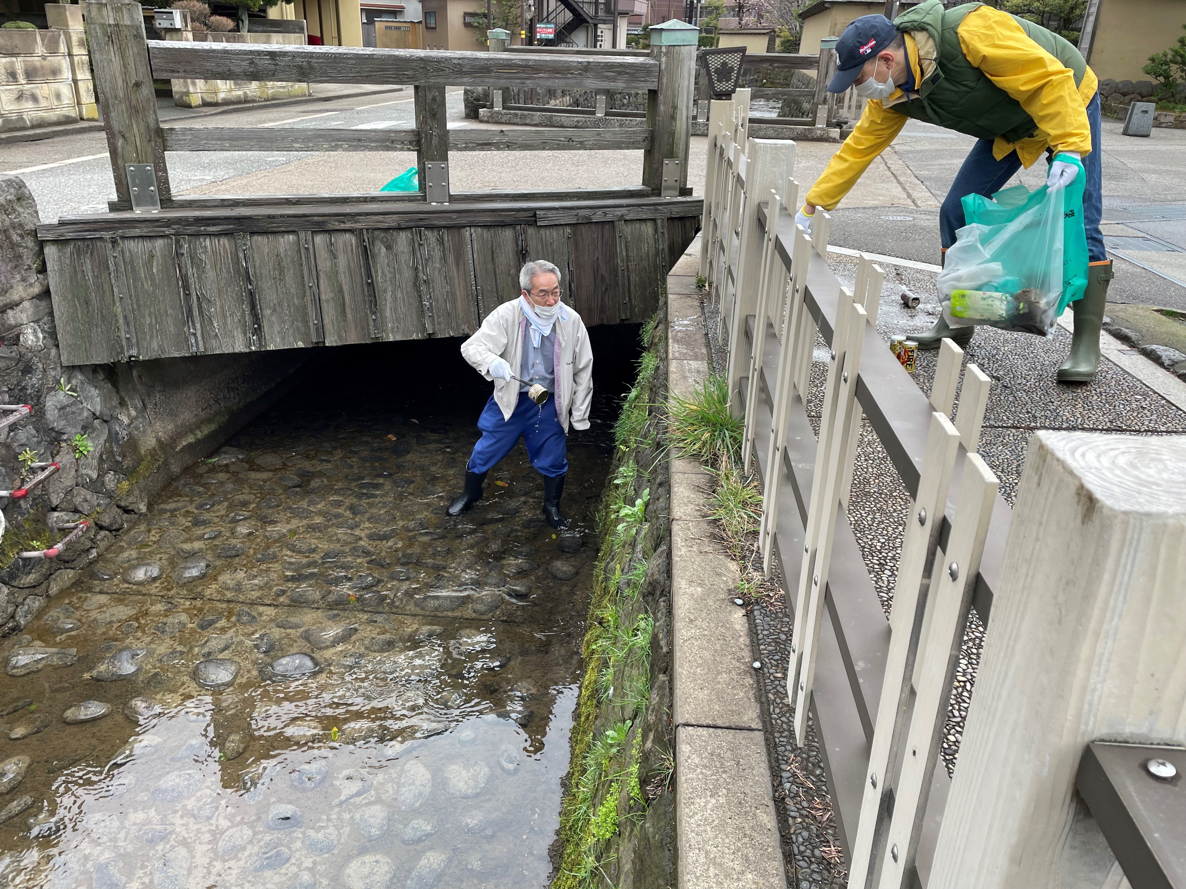 今年も長靴で用水に入り、橋の下に溜まっていた空き缶などを取り除いたり、用水沿いの除草などを行いました。
